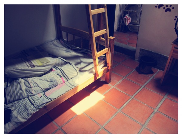 我们住在左边的厢房,里面两张杉木上下床,并未上漆,淡黄色的木条看起来很有田园风格。